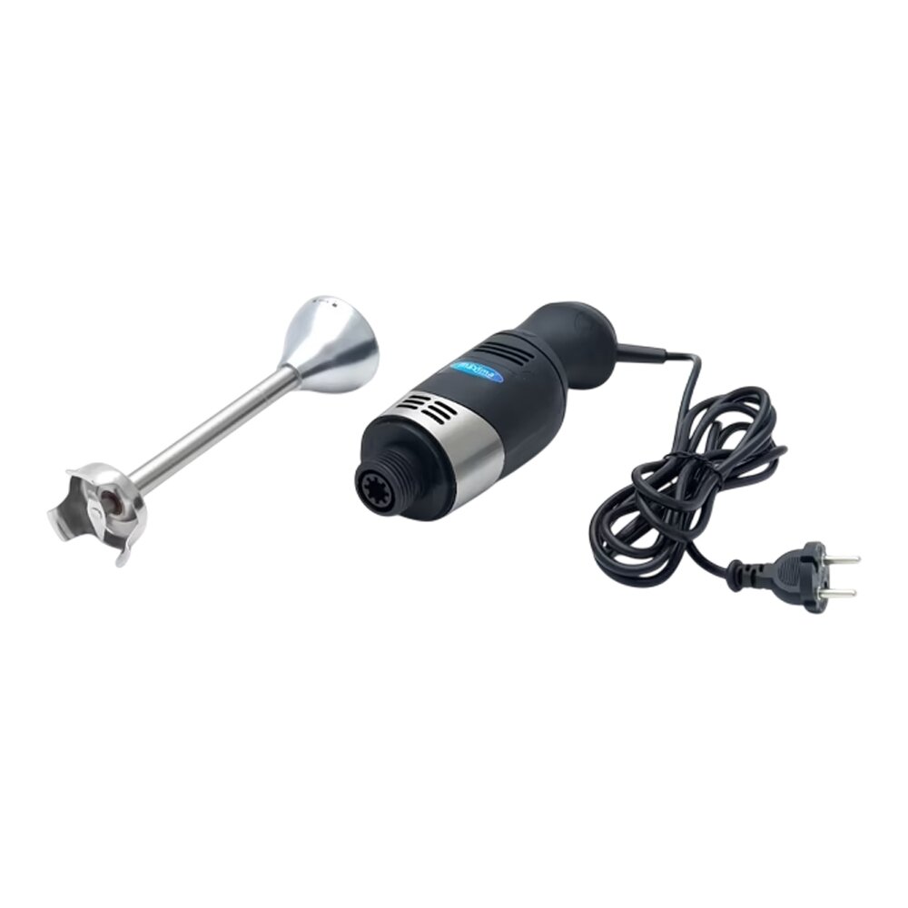 Модель оснащена міцним стрижнем із нержавіючої сталі та алюмінію з гострими лезами. На стрижні є позначка максимальної глибини занурення — 15 см. Перевищувати її не можна, щоб уникнути попадання рідини в мотор. Стрижень легко накручується та знімається.