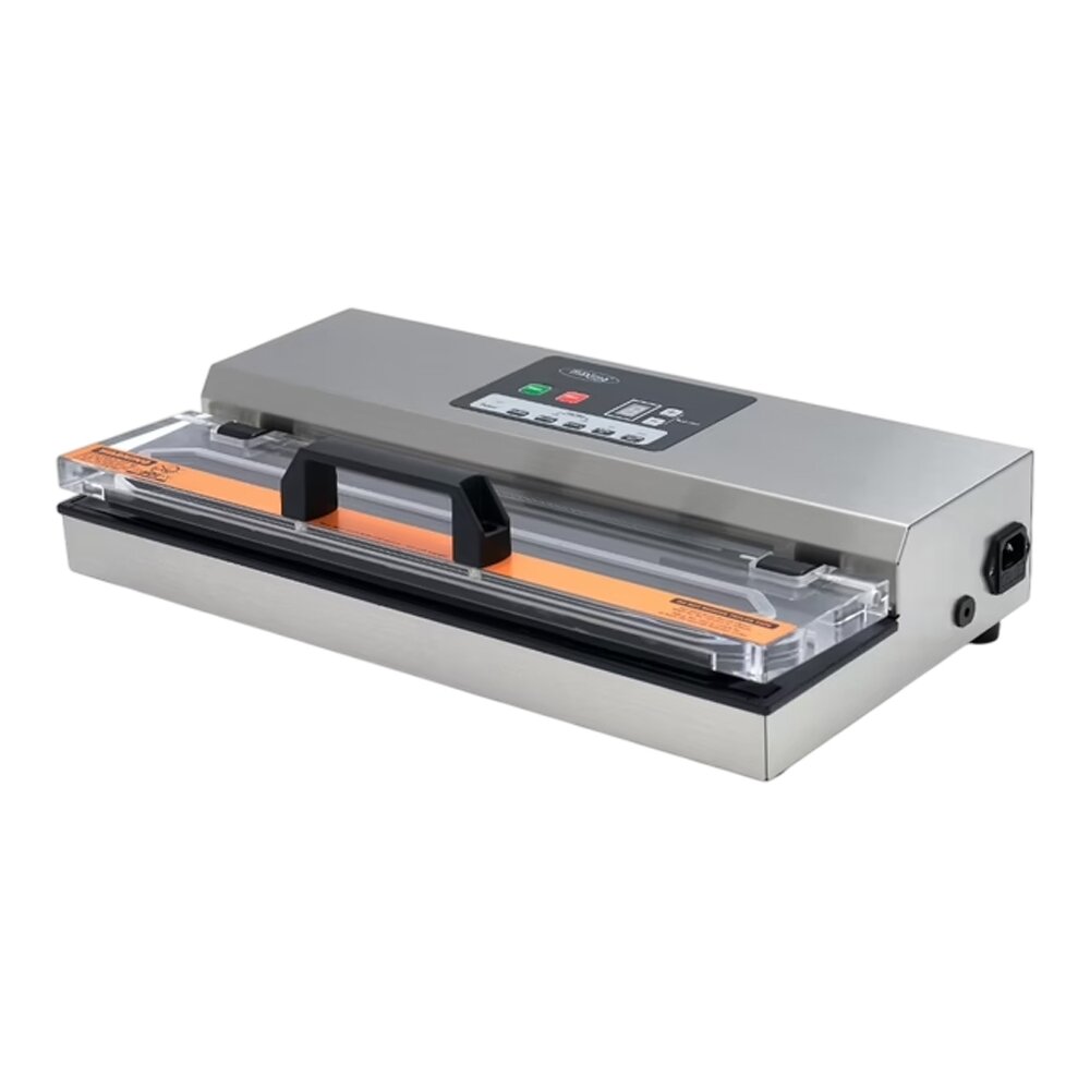 Якщо ви хочете довше зберігати продукти свіжими, скористайтеся цим професійним вакуумним пакувальником. Він герметично упаковує м'ясо, рибу, овочі, фрукти та рідини, такі як соуси, підливи та супи. Після герметизації продукти можуть зберігатися до п'яти разів довше. Завдяки компактним розмірам настільна модель ідеально підходить для розміщення на столі або стільниці, а після використання її легко прибрати. Цифрова панель керування зручна для користувача та повністю регулюється.
